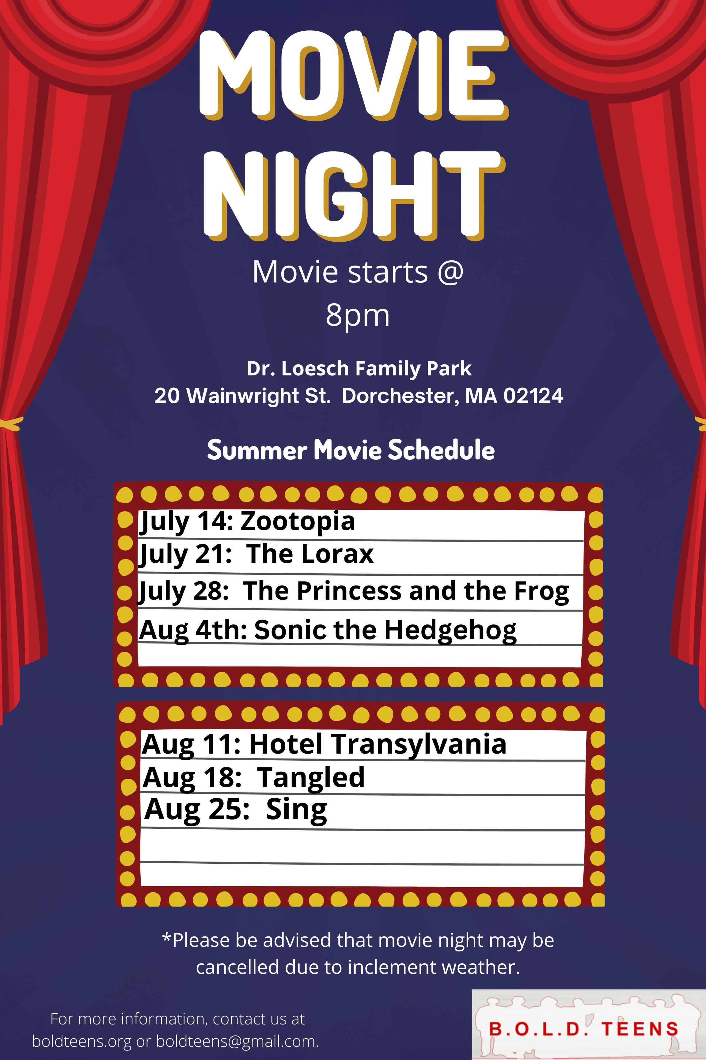 Movie Nights August 3, 2023August 3, 2023 Join us on Friday Nights! Share this: Click to share on X (Opens in new window) X Click to share on Facebook (Opens in new window) Facebook Like Loading... Related